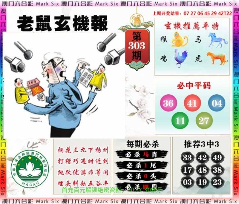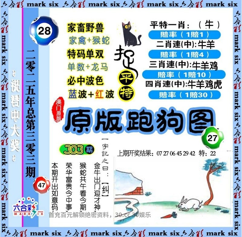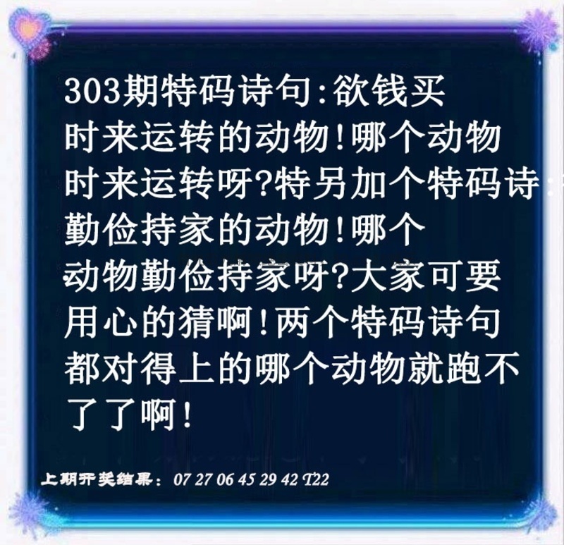 | 303期:天地两肖【天肖+鸡蛇】开:兔15准 |