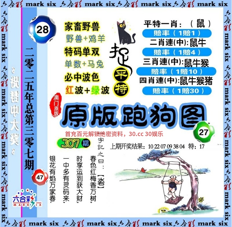 | 307期 | 鼠 | 绿双 | 2尾 | 开發00 |